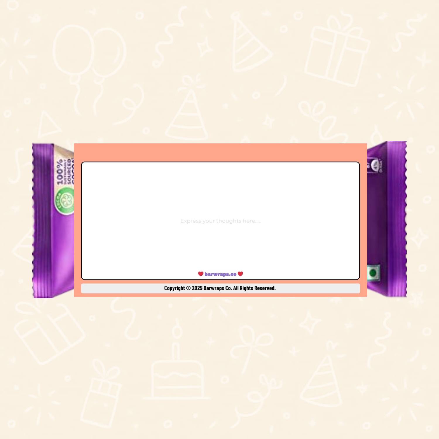 Printable size fits standard chocolate bars (approx. 5.25″ x 5.5″)