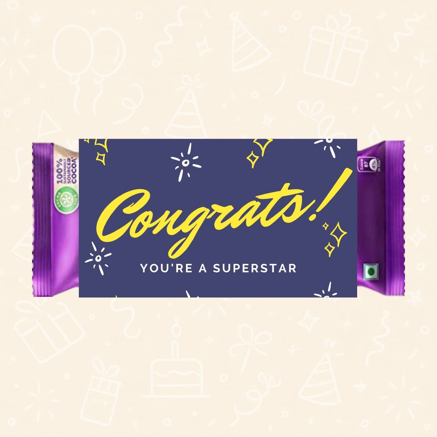 Shine a spotlight on someone’s big moment with our “Congrats, You Are a Superstar” Chocolate Wrapper — a vibrant and uplifting design from Barwraps! 🌟