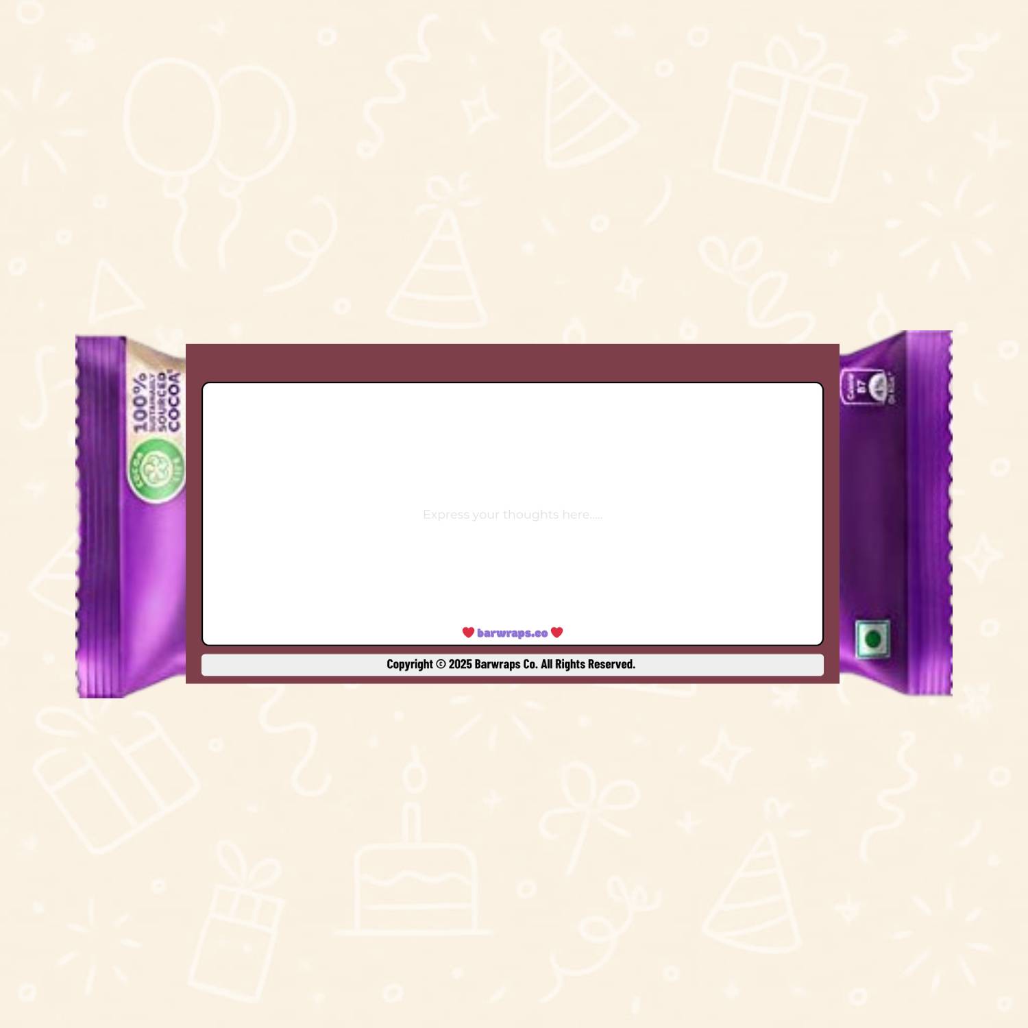 • Fits most 80g–100g chocolate bars (e.g., Cadbury Silk, Hershey’s)